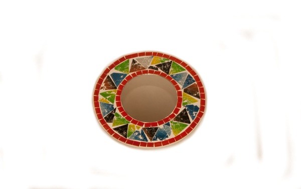 Espejo pequeño escayola con cristales rojos y triangulos azulesEspejo pequeño escayola con cristales rojos y triangulos azules